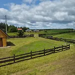 Domek Z Bala Brajniki- Caloroczny villa comes equipped with self-catering amenities, including a kitchenette, and an outdoor dining area for guests to enjoy. The kitchen also offers an electric kettle, a refrigerator, and an oven.
